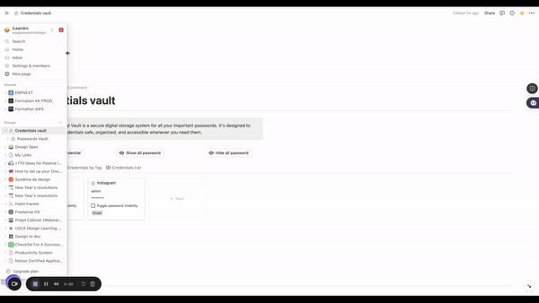 Introducing the Passwords Vault Template for Notion, the ultimate tool to keep all your login credentials organized and secure. Designed with a minimalistic interface and packed with powerful features, this template makes managing your passwords simple and efficient.